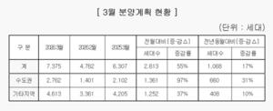 [¾ÆÀ¯°æÁ¦_ºÎµ¿»ê] Áß°ßÁÖÅþ÷ü, ¿ÃÇØ 3¿ù 7375°¡±¸ ºÐ¾ç¡¦ Àü³â µ¿¿ùºñ 17% Áõ°¡