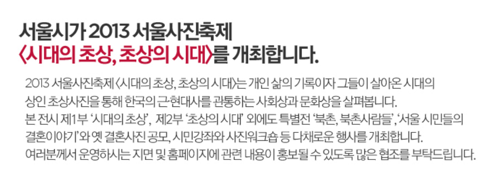 ÃàÁ¦¿¡´Â ¡ãº»Àü½Ã¡ãƯº°Àü¡ã½Ã¹Î¿öÅ©¼ó¡ã½Ã¹Î°Á¡ã»çÁøÀÇ ´Þ¡ã½Ã¹Îû ¼îÄÉÀ̽º ÇÁ·Î±×·¥µéÀÌ ¿¸®¸ç º»Àü½Ã 1ºÎ¿¡´Â ‘½Ã´ëÀÇÃÊ»ó’,2ºÎ¿¡¼´Â ‘ÃÊ»óÀÇ½Ã´ë’ ¿Ü¿¡µµ Ưº°Àü¿¡ ‘ºÏÃÌ,ºÏÃÌ»ç¶÷µé’,‘¼¿ï½Ã¹ÎµéÀÇ °áÈ¥ÀÌ¾ß±â’¿Í ¿¾°áÈ¥»çÁø °ø¸ð , ½Ã¹Î°ÁÂ¿Í »çÁø¿ö킇¼ó µî ´Ùä·Î¿î Çà»ç¸¦ °³ÃÖÇÑ´Ù.