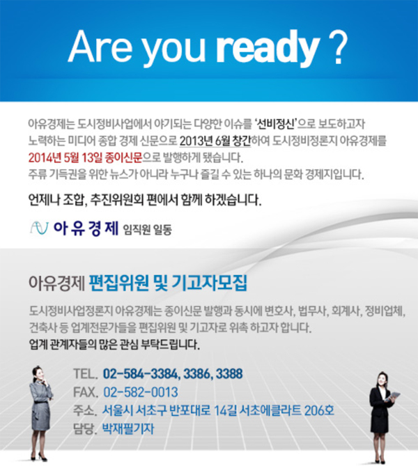 À°±ÙÈ£ ¾ÆÀ¯°æÁ¦ ÆíÁýÀÎÀº “µµ½ÃÁ¤ºñ»ç¾÷ Á¤·ÐÁö ‘¾ÆÀ¯°æÁ¦’´Â Àç°³¹ß¤ýÀç°ÇÃà Á¶ÇÕÀå ¹× ÃßÁøÀ§¿øÀå µîÀÌ Á÷Á¢ ÅõÀÚÇØ ¸¸µç Àç°³¹ß¤ýÀç°ÇÃà Àü¹®Áö”¶ó¸ç “Ç×»ó Á¶ÇÕ°ú ÃßÁøÀ§ Æí¿¡¼ ¹Ù¸¥ ¾ð·ÐÀ» ¸¸µé±â À§ÇØ ÃÖ¼±À» ´ÙÇϰڴٔ°í °¢¿À¸¦ ´ÙÁ³´Ù.