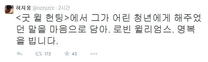 ÇÑÆí Àαâ ÇÁ·Î±×·¥ JTBC <¸¶³à»ç³É>ÀÇ ÁøÇàÀÚÀÎ ¿µÈ Æò·Ð°¡ ÇãÁö¿õÀº 12ÀÏ ÀÚ½ÅÀÇ Æ®À§ÅÍ¿¡ “‘±Â Àª ÇåÆÃ’¿¡¼ ±×°¡ ¾î¸° û³â¿¡°Ô ÇØ ÁÖ¾ú´ø ¸»À» ¸¶À½À¸·Î ´ã¾Æ. ·Îºó Àª¸®¾ö½º. ¸íº¹À» º÷´Ï´Ù”´Â ±Û·Î ¾Öµµ¸¦ Ç¥Çß´Ù.