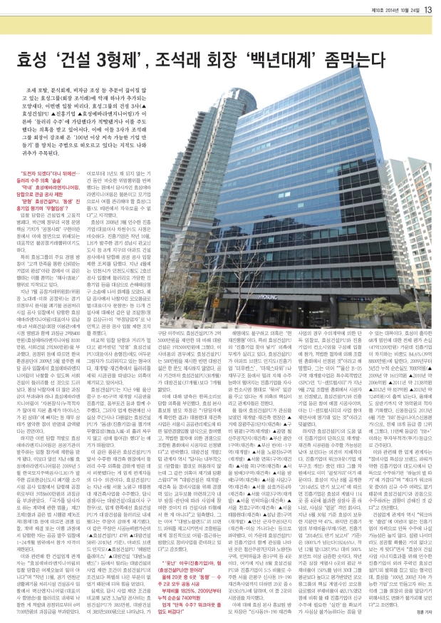 [¾ÆÀ¯°æÁ¦=Á¤ÈÆ ±âÀÚ] Á¶¼¼ Æ÷Å», ºÐ½Äȸ°è, ºñÀÚ±Ý Á¶¼º µî Ãß¹®ÀÌ ²÷ÀÌÁú ¾Ê°í ÀÖ´Â È¿¼º±×·ì(ȸÀå Á¶¼®·¡)¿¡ ¾ÇÀç Çϳª°¡ Ãß°¡µÇ´Â ¸ð¾ç»õ´Ù. À̹ø¿£ ÀÔÂû ºñ¸®´Ù. È¿¼º±×·ìÀÇ °Ç¼³ 3»ç(¡ãÈ¿¼º°Ç¼³PU ¡ãÁøÈï±â¾÷ ¡ãÈ¿¼º¿¡¹Ù¶ó¿£Áö´Ï¾î¸µ)°¡ À̸¥¹Ù ‘µé·¯¸® ¼öÁÖ’¿¡ °¡´ãÇß´Ù°¡ Àû¹ßµÆ°Å³ª À̸¦ ÁÖµµÇß´Ù´Â ÀÇȤÀ» ¹Þ°í À־Ù. ÀÌ¿¡ À̵é 3»ç°¡ Á¶¼®·¡ ±×·ì ȸÀåÀÌ °Á¶ÇØ ¿Â ‘100³â ÀÌ»ó Áö¼Ó °¡´ÉÇÑ ±â¾÷ ¸¸µé±â’¸¦ ¸ÁÄ¡´Â ÁÖ¹üÀ¸·Î ¶°¿À¸£°í ÀÖ´Ù´Â ÁöÀûµµ ³ª¿Í ±ÍÃß°¡ ÁÖ¸ñµÈ´Ù.