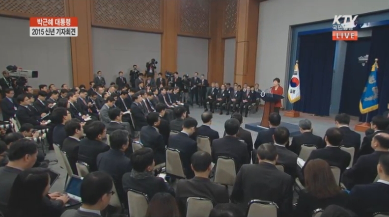 | ¡ã ¹Ú±ÙÇý ´ëÅë·ÉÀÌ ³»¿Ü½Å ±âÀÚµéÀÇ ÁúÀÇ¿¡ ´äÇϰí ÀÖ´Ù. <»çÁø : KTV Áß°è ȸé ĸó> | ||