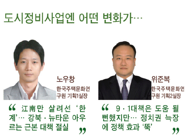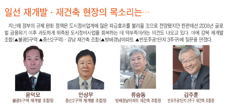 Áö³ÇØ Á¤ºÎÀÇ ±ÔÁ¦ ¿ÏÈ Á¤Ã¥Àº µµ½ÃÁ¤ºñ¾÷°è¿¡ ¸¹Àº ÆÄ±ÞÈ¿°ú¸¦ ºÒ·¯¿Ã °ÍÀ¸·Î Àü¸ÁµÆÁö¸¸ ÇÑÆí¿¡¼± 2008³â ±Û·Î¹ú ±ÝÀ¶À§±â ÀÌÈÄ °úµµÇÏ°Ô À§ÃàµÈ µµ½ÃÁ¤ºñ»ç¾÷À» ȸº¹ÇÏ´Â µ¥ ¿ªºÎÁ·À̶ó´Â Àǰߵµ ³ª¿À°í ÀÖ´Ù. ÀÌ¿¡ °ºÏ Àç°³¹ß Á¶ÇÕ(¡ãºÒ±¤5±¸¿ª ¡ãÁõ»ê2±¸¿ª)¤ý°³² Àç°ÇÃà Á¶ÇÕ(¡ã¹æ¹è°æ³²¾ÆÆÄÆ® ¡ã¹ÝÆ÷ÁÖ°ø1´ÜÁö 3ÁÖ±¸)¿¡ Áú¹®À» ´øÁ³´Ù.