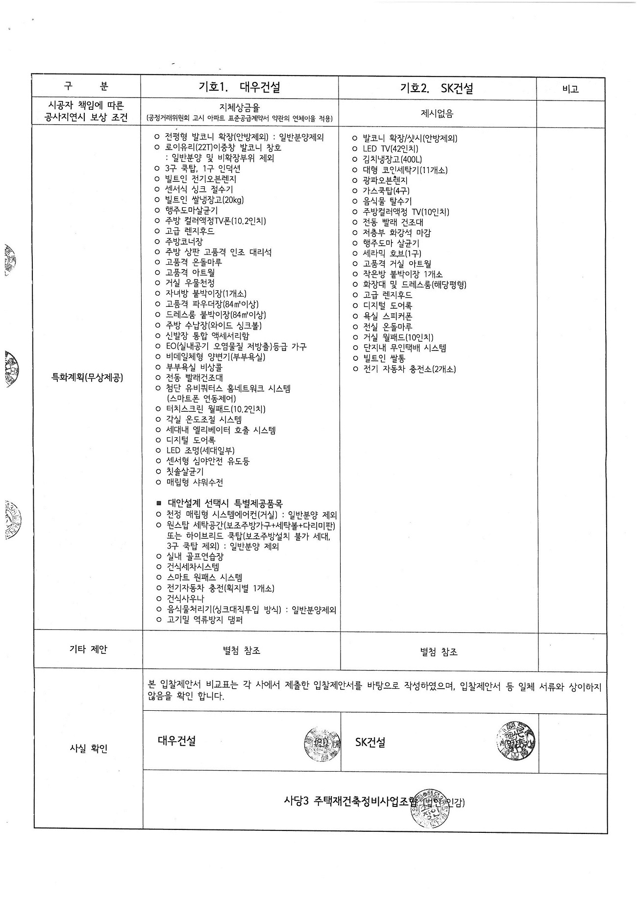 »ç¾÷ºñ ´ë¿© Á¶°Ç Áß ¹«ÀÌÀÚ ´ë¿©±Ý Çѵµµµ ´ë¿ì°Ç¼³Àº 295¾ï¿øÀ» Á¦½ÃÇØ SK°Ç¼³(250¾ï¿ø)º¸´Ù ÁÁ¾Ò´Ù. ½Ã°øÀÚ Ã¥ÀÓ¿¡ µû¸¥ °ø»ç Áö¿¬ ½Ã º¸»ó Á¶°Çµµ ´ë¿ì°Ç¼³Àº Áöü»ó±ÝÀ²(°øÁ¤°Å·¡À§¿øÈ¸ °í½Ã ¾ÆÆÄÆ® Ç¥Áذø±Þ°è¾à¼ ¾à°üÀÇ ¿¬Ã¼ ÀÌÀ² Àû¿ë)À» Á¦½ÃÇÑ µ¥ ¹ÝÇØ SK°Ç¼³Àº Àü¹«Çß´Ù.