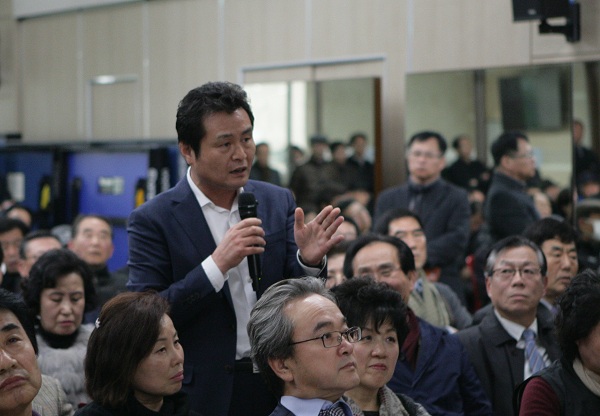 ÇÏÁö¸¸ À̳¯ ¼³¸íȸ¿¡´Â ÁֹΠ50¿© ¸í(°¡Á· ¹× °ü°èÀÚ Æ÷ÇÔ)¸¸ Âü¼®ÇÏ´Â µ¥ ±×ÃÆ´Ù. °ºÏ±Ç ¼³¸íȸ ¶§ »ç¶÷ÀÌ ¸ô·Á ȸÀÇÀåÀÌ ºñÁ¼Àº Å¿¿¡ ÀϺΰ¡ µÇµ¹¾Æ°¬´ø °Í°ú´Â ±Ø¸íÈ÷ ´ëÁ¶¸¦ ÀÌ·é °ÍÀÌ´Ù.
