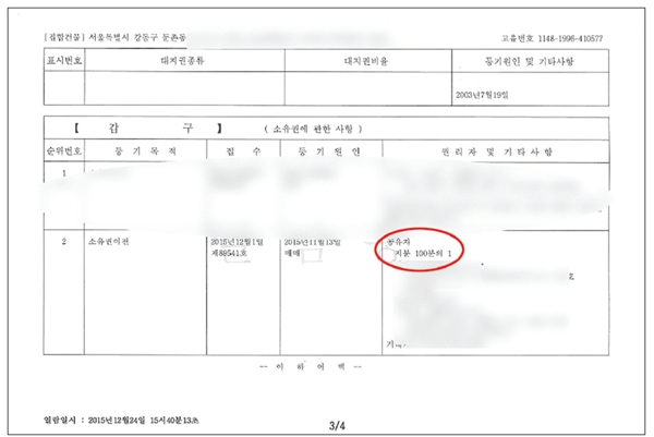½ÇÁ¦·Î K¾¾°¡ ¼ÒÀ¯Çϰí ÀÖ´Â »ó°¡ µî±âºÎµîº»À» ¿¶÷ÇØ º» °á°ú, ±×´Â 2015³â 11¿ù 13ÀÏ ÇØ´ç ÁöºÐÀ» ¸ÅÀÔÇß°í, ÀÌ´Â 1/100 °øÀ¯·Î µÅ ÀÖ´Â °ÍÀ¸·Î ³ªÅ¸³µ´Ù. ÇØ´ç »ó°¡ °Ç¹°ÀÇ °Å·¡ °¡¾×ÀÌ ¾à 2¾ï¿øÀÓÀ» °í·ÁÇϸé, ½ÇÁ¦ K¾¾°¡ Á¶ÇÕ¿ø ÀÚ°ÝÀ» ¾ò±â À§ÇØ ÅõÀÚÇÑ ºñ¿ëÀº ¼ö¹é¸¸¿ø¿¡ ºÒ°úÇÏ´Ù´Â ÁÖÀåµµ ³ª¿Ô´Ù.