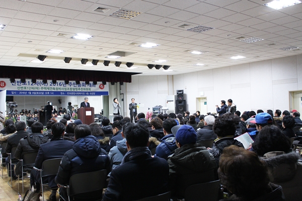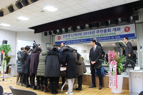 Áö³ 9ÀÏ ¿ÀÈÄ 1½Ã ½Å¹ÝÆ÷12Â÷ Àç°ÇÃà Á¶ÇÕ¼³¸³ÃßÁøÀ§¿øÈ¸(À§¿øÀå ½ÅÆò±â¤ýÀÌÇÏ ÃßÁøÀ§)´Â ´ÜÁö Àαٿ¡ À§Ä¡ÇÑ ¹ÝÆ÷Á¾ÇÕ»çȸº¹Áö°ü¿¡¼ ÁÖ¹ÎÃÑȸ¸¦ °³ÃÖÇß´Ù. À̳¯ ÃÑȸ¿¡´Â ÅäÁöµî¼ÒÀ¯ÀÚ 324¸í Áß 258¸í(Á÷Á¢ Âü¼® 54¸í, ¼¸é°áÀÇ 204¸í)ÀÌ Âü¼®ÇØ ¼º¿øÀ» ÀÌ·ð´Ù.
