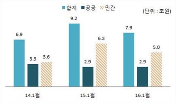 ÀÌ¿¡ µû¸£¸é Áö³ 1¿ù ¹ßÁֺι®º°‧°øÁ¾º° ±¹³» °Ç¼³ ¼öÁÖ¾×Àº °ø°ø ºÎ¹® ¼öÁÖ¾× 2Á¶9438¾ï¿øÀ¸·Î Àü³â µ¿¿ù ´ëºñ 1.1% Áõ°¡Çß´Ù.