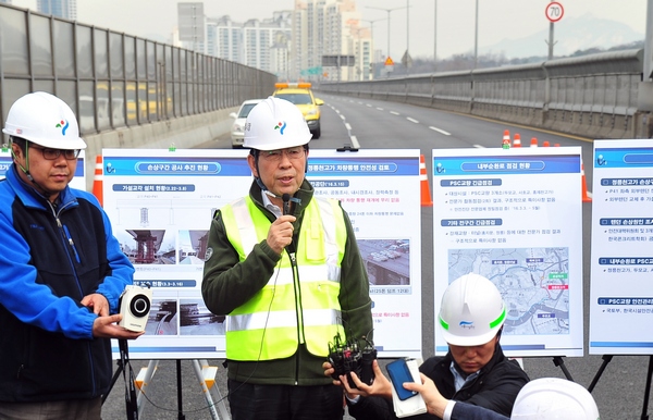 ¶ÇÇÑ ºÐ¾ßº°(±¸Á¶¤ýPSC¤ý¾ÈÀüÁø´Ü¤ýÀ¯Áö°ü¸® µî / PSC´Â Pre-stressed ConcreteÀÇ ÁÙÀÓ¸»·Î, PDC±³·®Àº ÄÜÅ©¸®Æ® ±¸Á¶¹°¿¡ °¿¬¼±À» ÅëÇØ ¾ÐÃà·ÂÀ» ¹Ì¸® µµÀÔÇØ ÀÎÀå·Â¿¡ ´ëÀÀÇϵµ·Ï ¼³°èµÈ ±³·®À» ¸»ÇÔ) Àü¹®°¡ 14¸íÀ¸·Î ±¸¼ºµÈ ¾ÈÀü´ëÃ¥À§¿øÈ¸¿¡¼ Àӽà °Àç±³°¢À» ¼³Ä¡ÇÑ »óÅ¿¡¼ Á¤¸ªÃµ°í°¡±³¿¡ ÃÑ Áß·® 24Åæ(Ç¥ÁØ Æ®·° ÇÏÁß DB-13.5) Â÷·® Åë°ú¿¡ ´ëÇÑ ±¸Á¶ °ËÅ並 ½ÃÇàÇßÀ¸¸ç, ´ýÇÁÆ®·° 12´ë¸¦ µ¿¿øÇØ ½ÇÁ¦ ÇÏÁß ÀçÇÏ ½ÃÇè ¶ÇÇÑ ¸¶ÃÆ´Ù. ½ÃÇè °á°ú Àç°³Åë¿¡ ¹®Á¦°¡ ¾ø´Â °ÍÀ¸·Î ³ªÅ¸³µ´Ù.