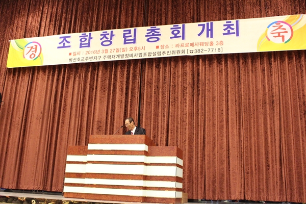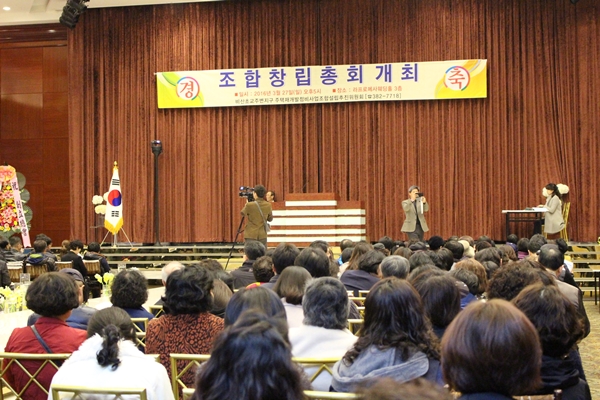 Áö³ 27ÀÏ ¿ÀÈÄ 5½Ã ºñ»êÃʱ³ÁÖº¯Áö±¸ Àç°³¹ß Á¤ºñ»ç¾÷Á¶ÇÕ(ÀÌÇÏ Á¶ÇÕ) ¼³¸³ÃßÁøÀ§¿øÈ¸(ÀÌÇÏ ÃßÁøÀ§)´Â ´ÜÁö Àαٿ¡ À§Ä¡ÇÑ ¶óÇÁ·Î¸Þ»ç¿þµùȦ¿¡¼ Á¶ÇÕ Ã¢¸³ÃÑȸ¸¦ °³ÃÖÇß´Ù. À̳¯ ÃÑȸ¿¡´Â Àüü ÅäÁöµî¼ÒÀ¯ÀÚ 1634¸í Áß 1014¸í(¼¸é°áÀÇ Æ÷ÇÔ)ÀÌ Âü¼®ÇØ ¼º¿øÀ» ÀÌ·ð´Ù.