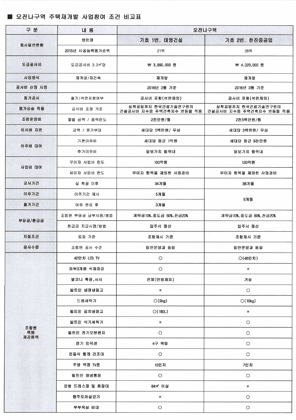 ƯÈ÷ Á¶ÇÕ¿øµéÀÇ °ü½ÉÀÌ ÁýÁßµÈ 3.3§³´ç °ø»çºñÀÇ °æ¿ì ÇÑÁøÁß°ø¾÷Àº 402¸¸3000¿øÀ» Á¦½ÃÇÑ ¹Ý¸é Å¿µ°Ç¼³Àº À̺¸´Ù 3¸¸3000¿ø ³·Àº 399¸¸ ¿øÀ» Á¦¾ÈÇß´Ù. °¡±¸´ç Æò±Õ ÀÌÁÖºñ ¶ÇÇÑ Å¿µ°Ç¼³ÀÌ 1¾ï ¿øÀ» Á¦½ÃÇØ ÇÑÁøÁß°ø¾÷º¸´Ù 1000¸¸ ¿ø ¸¹¾Ò´Ù. °¡±¸´ç ÀÌ»çºñµµ 500¸¸ ¿øÀ» Á¦½ÃÇÑ Å¿µ°Ç¼³ÀÌ 300¸¸ ¿øÀ» Á¦¾ÈÇÑ ÇÑÁøÁß°ø¾÷º¸´Ù ¾Õ¼¹´Ù.