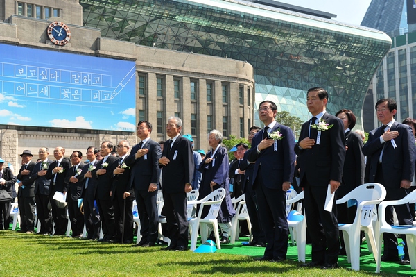 | ¡ã ÀØÁö ¾ÊÀ¸¸®… ¿À´Ã(18ÀÏ)Àº 5¤ý18 ±¤ÁÖ¹ÎÁÖȿ 36ÁÖ±âÀÌ´Ù. À̸¦ ±â³äÇϱâ À§ÇÑ Çà»ç°¡ Àü±¹ °÷°÷¿¡¼ ÁøÇàµÆ´Ù. »çÁøÀº ¼¿ï½Ãû ¾Õ¿¡¼ °ÅÇàµÈ ±â³ä½Ä¿¡¼ ¹Ú¿ø¼ø ¼¿ï½ÃÀå µîÀÌ ±¹¹ÎÀǷʸ¦ Çϰí ÀÖ´Â ¸ð½À. <Á¦°ø=¼¿ï½Ã> | ||