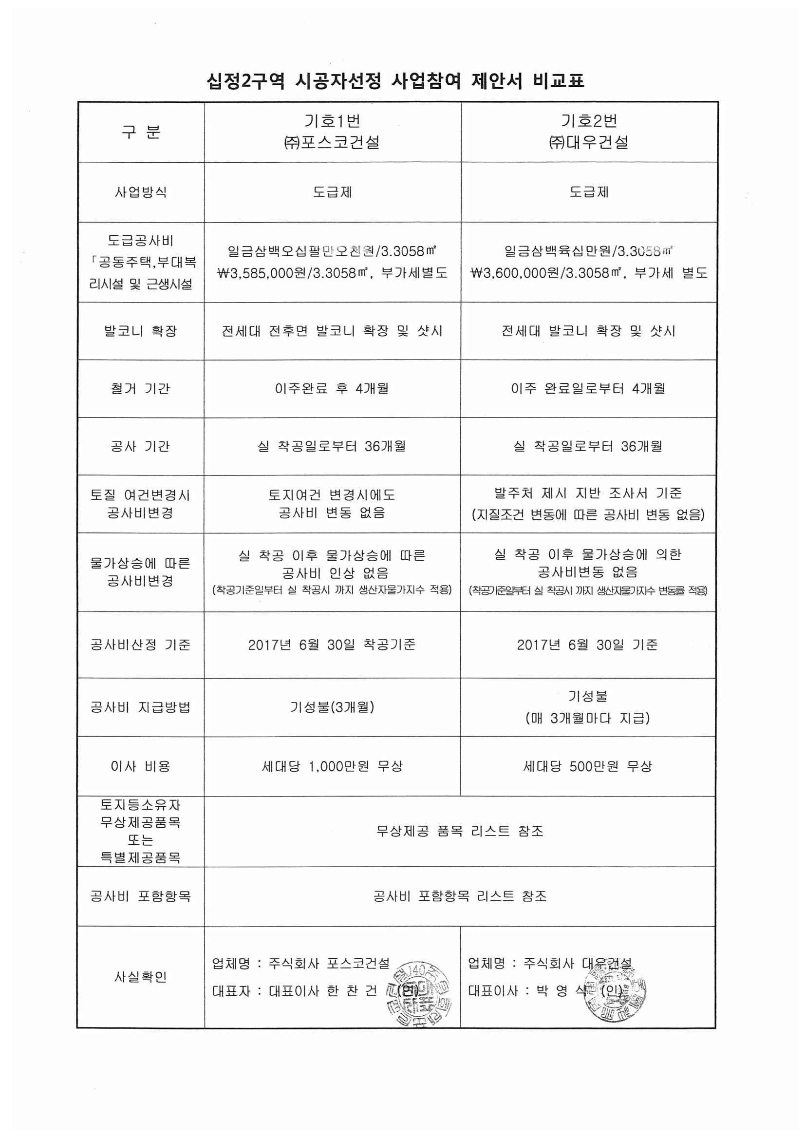 13ÀÏ ¾÷°è µî¿¡ µû¸£¸é ½ÊÁ¤2±¸¿ª ÁÖ°Åȯ°æ°³¼±»ç¾÷ Áֹδëǥȸ(À§¿øÀå ÀÌÂù±¸¤ýÀÌÇÏ ÁÖ´ëȸ)´Â Áö³ 2ÀÏ ½Ã°øÀÚ ¼±Á¤À» À§ÇÑ ÀÔÂû¿¡ ÀÀÂûÇÑ ´ë¿ì°Ç¼³°ú Æ÷½ºÄڰǼ³ÀÇ ÀÔÂûÁ¦¾È¼¸¦ ºñ±³ÇÑ ³»¿ëÀ» ÃÖ±Ù °ø°³Çß´Ù.