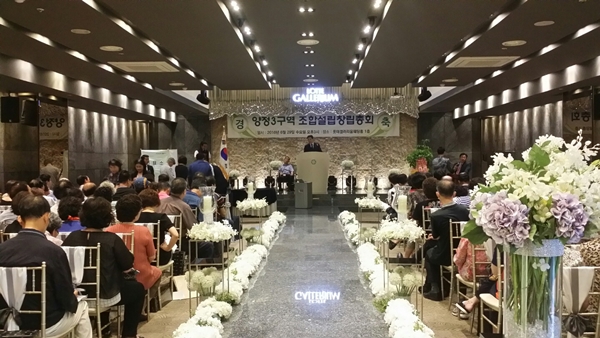 1ÀÏ ¾çÁ¤3±¸¿ª Àç°³¹ß Á¶ÇÕ¼³¸³ÃßÁøÀ§¿øÈ¸(ÀÌÇÏ ÃßÁøÀ§)¿¡ µû¸£¸é ÃßÁøÀ§´Â Áö³´Þ(6¿ù) 29ÀÏ ¿ÀÈÄ 3½Ã ·Ôµ¥°¶·¯¸®¿ò¿þµùȦ 1Ãþ¿¡¼ Á¶ÇÕ Ã¢¸³ÃÑȸ¸¦ °³ÃÖÇß´Ù. À̳¯ ÃÑȸ¿¡´Â Àüü ÅäÁöµî¼ÒÀ¯ÀÚ 362¸í Áß 240¸í(¼¸é°áÀÇ Æ÷ÇÔ)ÀÌ Âü¼®ÇØ ¼º¿øÀ» ÀÌ·ð´Ù.