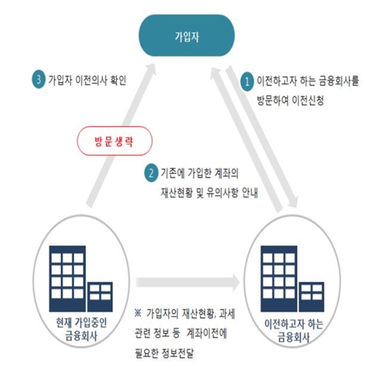 ÀÌ¿¡ µû¸£¸é °èÁ ÀÌÀüÀ» Èñ¸ÁÇÏ´Â °¡ÀÔÀÚ°¡ ÀÌÀüÇÏ·Á´Â ±ÝÀ¶»ç¸¸ ¹æ¹®ÇÏ¸é ¿ø ½ºÅé 󸮰¡ °¡´ÉÇϵµ·Ï ÇßÀ¸¸ç, °èÁ ÀÌÀü ¾÷¹« ó¸® ¼ö¼ö·á´Â ¹ÞÁö ¾Ê´Â µî ºñ¿ë ºÎ´ãÀ» ¿ÏÈÇß´Ù.