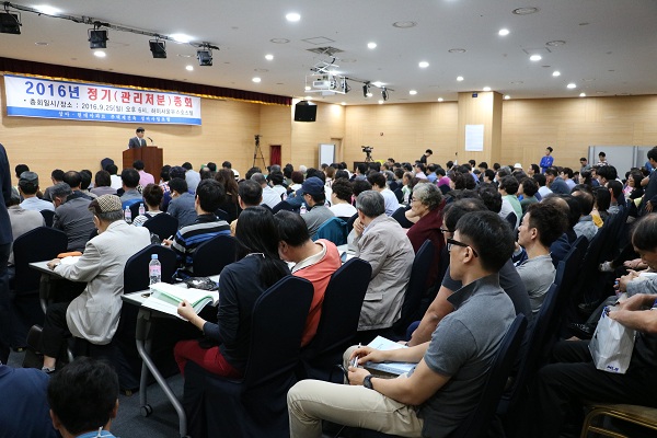 ƯÈ÷ ÃÖ´ë Çö¾ÈÀÎ Á¦2È£ ¾È°ÇÀ» ó¸®ÇÏ´Â µ¥ ÀÖ¾î ¹«·Á 500¸íÀÇ Á¶ÇÕ¿øÀÌ Âù¼ºÇ¥¸¦ ´øÁö¸ç Á¶ÇÕÀÌ ¸¶·ÃÇÑ °ü¸®Ã³ºÐ°èȹ(¾È)¿¡ ´ëÇÑ ½Å·Ú¸¦ ¾Æ³¦¾øÀÌ µå·¯³Â´Ù.