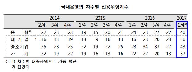 | ¡ã ±¹³» ÀºÇàÀÇ Â÷ÁÖº° ½Å¿ë À§Çè Áö¼ö. <Á¦°ø=Çѱ¹ÀºÇà> |