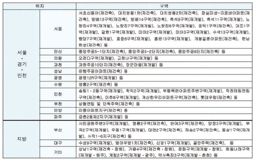Áö³ 10ÀÏ º»º¸°¡ µµ½ÃÀçÁ¤ºñ¾÷°èÀÇ ¿ÃÇØ ½Ã°øÀÚ ¼±Á¤ ¿¹Á¤ÀÎ Àç°³¹ß¤ýÀç°ÇÃà ±¸¿ªÀ» Áý°èÇÑ °á°ú ¼¿ï¿¡¼¸¸ 30¿© °÷ÀÌ ½Ã°ø±Ç ÁÖÀÎÀ» ã°Ô µÉ °ÍÀ¸·Î ÆÄ¾ÇµÆ´Ù. ¼Ãʽŵ¿¾Æ, ´ëÄ¡½Ö¿ë1¤ý2Â÷, Àá½Ç¹Ì¼º-Å©·Î¹Ù¾ÆÆÄÆ®, ¹æ¹è13±¸¿ª, ¹æ¹è14±¸¿ª, °ø´ö1±¸¿ª, °³ºÀ±æÈÆ¾ÆÆÄÆ®, Çѳ²ÇѼº(ÀÌ»ó Àç°ÇÃà), Èæ¼®9±¸¿ª, Èæ¼®11±¸¿ª, ³ë·®Áø4±¸¿ª, ³ë·®Áø7±¸¿ª, ³ë·®Áø8±¸¿ª, ´ëÁ¶1±¸¿ª, °¥Çö1±¸¿ª, ¹Ì¾Æ2±¸¿ª, ¹Ì¾Æ3±¸¿ª, ¼ö»ö13±¸¿ª, Çà´ç7±¸¿ª, ȿâ6±¸¿ª, È«Àº13±¸¿ª(ÀÌ»ó Àç°³¹ß) µîÀÌ ÀÌ¿¡ ÇØ´çÇÑ´Ù.