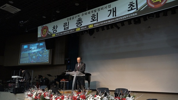 Á¤¸ª°ñ±¸¿ªÀº ¶Ù¾î³ ÀÚ¿¬°æ°ü(ºÏÇÑ»ê ±¹¸³°ø¿ø, Á¤¸ª»ýÅÂÇÏõ µî)¿¡µµ ºÒ±¸Çϰí, ¿¾ÇÇÑ ÁÖ°Åȯ°æ(³ëÈÄ ºÒ·®°ÇÃ๰ 93.3%, µµ½Ã±â¹Ý½Ã¼³ »ç½Ç»ó Àü¹«, ´ëºÎºÐ µµ·Î´Â °ñ¸ñ±æ µî)À¸·Î ÀÎÇØ »ýȰ¿¡ ºÒÆíÇÔÀ» È£¼ÒÇØ¿Ô´Ù. ÀÌ¿¡ ¸¹Àº ÅäÁöµî¼ÒÀ¯ÀÚµéÀÌ ÁÖ°Åȯ°æ °³¼±À» °£ÀýÈ÷ ¿°¿øÇßÁö¸¸, °³º° ½ÅÃàÀ» ÇÒ ¼ö ÀÖ´Â ºÎÁö´Â 10% ¹Ì¸¸À¸·Î ‘Àç°³¹ß»ç¾÷ ¿Ü¿¡´Â ȯ°æÀ» °³¼±ÇÒ ¹æ¹ýÀÌ ¾ø´Ù’´Â ¼ººÏ±¸Ã»ÀÇ ´äº¯À» µé¾ú´Ù. 2003³â 11¿ù °³¹ßÁ¦Çѱ¸¿ª ÇØÁ¦¸¦ ½ÃÀÛÀ¸·Î, 2006³â 11¿ù Áö±¸´ÜÀ§°èȹ °áÁ¤ °í½Ã(Á¤¸ª3µ¿ Ưº°°èȹ±¸¿ª ÁöÁ¤), Áö±¸´ÜÀ§°èȹ ¼ö¸³ ¿Ï·á, 2008³â 5¿ù Ưº°°æ°ü°ü¸®Áö¿ª ¼¿ï½Ã ½Ã¹ü»ç¾÷ ÁöÁ¤, 2009³â 9¿ù Á¤ºñ±¸¿ª ÁöÁ¤(¾È) °ø¶÷¤ý°ø°í, 2012³â 8¿ù ¼¿ï½Ã °áÁ¤ °í½Ã(Àç°³¹ß ±¸¿ª °í½Ã), 2013³â 6¿ù ¼¿ï½Ã ½ÇÅÂÁ¶»ç, ±×´Þ 12¿ù ½ÇÅÂÁ¶»ç Åë°ú µîÀ» °ÅÃÄ ÅäÁöµî¼ÒÀ¯ÀÚµéÀÇ ÀüÆøÀûÀÎ ¼º¿øÀ¸·Î 2014³â 6¿ù 24ÀÏ ÃßÁøÀ§±¸¼º½ÂÀÎÀ» ¹Þ¾Ò´Ù. ÀÌÈÄ Áö³ÇØ 11¿ù 30ÀÏ ±âÁØ Á¶ÇÕ¼³¸³µ¿ÀÇÀ² 75.64%¸¦ ´Þ¼ºÇØ Áö³´Þ 21ÀÏ Ã¢¸³ÃÑȸ¸¦ °³ÃÖÇÏ°Ô µÆ´Ù.