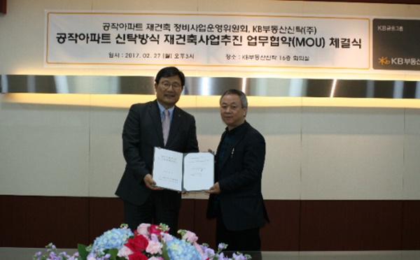 Áö³´Þ(2¿ù) 27ÀÏ KBºÎµ¿»ê½ÅŹ¿¡ µû¸£¸é KBºÎµ¿»ê½ÅŹ ´ëÇ¥ÀÌ»ç¿Í °øÀÛ¾ÆÆÄÆ® ¿î¿µÀ§¿øÀåÀº À̳¯ ¿ÀÈÄ ¼¿ï ¿ª»ïµ¿ º»»ç¿¡¼ ½ÅŹ ¹æ½Ä Àç°ÇÃà»ç¾÷ ÃßÁø MOU¸¦ ü°áÇß´Ù.