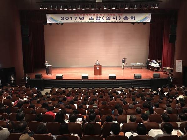 | ¡ã À̳¯ ÃÑȸ´Â Àüü Á¶ÇÕ¿ø 2361¸í Áß 2193¸í(¼¸é°áÀÇ Æ÷ÇÔ)ÀÌ Âü¼®ÇØ ¶ß°Å¿î ¿±â¸¦ º¸¿´´Ù. ¾Æ¿ï·¯ »óÁ¤µÈ ¾È°Çµµ ¸ðµÎ ¿ø¾È °¡°áµÆ´Ù. <»çÁø=À¯ÁØ»ó ±âÀÚ> |