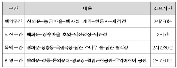 ÇØ¼³ ÁøÇàÀº 2008³âºÎÅÍ ÇѾ絵¼ºÀ» ¹«·á·Î ÇØ¼³Çϰí ÀÖ´Â ‘¼¿ïKYCµµ¼º±æ¶óÀâÀÌ’°¡ ÇÔ²² Çϸç, Åõ¾î Ãâ¹ßÀå¼Ò´Â µµ¼º ¾ÈÆÆÀ» ¿¬°áÇß´ø ¼º¹® ¾ÕÀÌ´Ù. Ãâ¹ß½Ã°£Àº ¿ÀÈÄ 1½Ã 30ºÐÀ¸·Î ¹é¾ÇÄÚ½º(âÀǹ®), ³«»êÄÚ½º(Çýȹ®), ¸ñ¸èÄÚ½º(±¤Èñ¹®), ÀοÕÄÚ½º(¼þ·Ê¹®), 4°³ ÄÚ½º ¸ðµÎ µ¿ÀÏÇÏ´Ù.