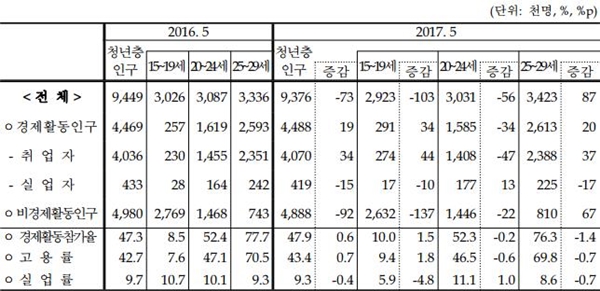20ÀÏ Åë°èûÀÇ ‘2017³â 5¿ù °æÁ¦È°µ¿Àα¸Á¶»ç û³âÃþ ºÎ°¡Á¶»ç °á°ú’¿¡ µû¸£¸é ¿ÃÇØ 5¿ù ±âÁØÀ¸·Î Á¹¾÷¤ýÁßÅð ÈÄ Ãë¾÷ÇÏÁö ¸øÇ߰ųª, Ãë¾÷Çß´Ù°¡ ÀÏÀ» ±×¸¸µÖ ¹ÌÃë¾÷ »óÅÂÀΠû³âÃþ(15∼29¼¼)Àº 147¸¸2000¸í¿¡ ´ÞÇß´Ù.