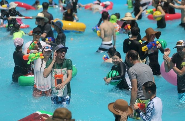 | ¡ã ÇØ¿î´ë ÇØ¼ö¿åÀå¿¡¼ ¿¸° ‘¹°ÀÇ ³Àå’¿¡¼ Áñ°Ì°Ô ³ë´Â °ü¶÷°´ÀÇ ¸ð½À. <Á¦°ø=ºÎ»ê¹®È°ü±¤ÃàÁ¦Á¶Á÷À§¿øÈ¸> |
