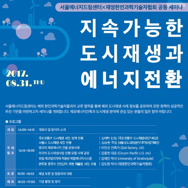 ¼¿ï½Ã´Â ¿À´Â 31ÀÏ ¸ñ¿äÀÏ ¼¿ï¿¡³ÊÁöµå¸²¼¾ÅÍ(¼¾ÅÍÀå À°°æ¼÷)¿¡¼ ‘Áö¼Ó°¡´ÉÇÑ µµ½ÃÀç»ý°ú ¿¡³ÊÁö Àüȯ’À» ÁÖÁ¦·Î ¼¼¹Ì³ª¸¦ °³ÃÖÇÑ´Ù°í Áö³ 15ÀÏ ¹àÇû´Ù.