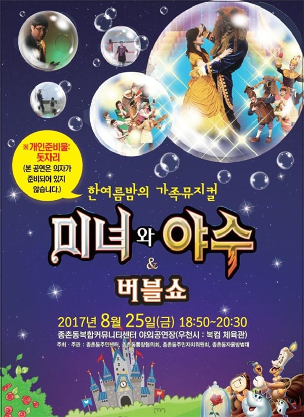 ¼¼Á¾Æ¯º°ÀÚÄ¡½Ã Á¾Ã̵¿(µ¿Àå ±æ¼øÀÚ)Àº ¿À´Â 25ÀÏ Á¦Ãµ¶ã °ø¿ø ¾ß¿Ü°ø¿¬Àå¿¡¼ ¿Â °¡Á·ÀÌ ÇÔ²² Áñ±æ ¼ö ÀÖ´Â ¸íÀÛµ¿È °¡Á·¹ÂÁöÄà ‘¹Ì³à¿Í ¾ß¼ö’¸¦ °ø¿¬ÇÑ´Ù°í ¹àÇû´Ù.