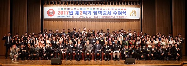 ÀÌ È¸ÀåÀº À¯Çлý ¸ðµÎ¿¡°Ô ÀåÇÐÁõ¼¸¦ Á÷Á¢ Àü´ÞÇÏ¸é¼ “³¸¼± ¹®È¿Í ¾ð¾îÀÇ Â÷À̸¦ ±Øº¹Çϰí ÈǸ¢ÇÑ ÀÎÀç·Î ¼ºÀåÇϰí ÀÖ´Â ÇлýµéÀÇ ¶¡°ú ³ë·ÂÀÌ ÁÁÀº °á½ÇÀ» ¸Î±æ ¹Ù¶õ´Ù”¸é¼ “Áö±¸ÃÌÀ» À̲ø¾î °¥ ±Û·Î¹ú ¸®´õ·Î ¼ºÀåÇØ °í±¹°ú Çѱ¹À» ÀÕ´Â °¡±³ ¿ªÇÒÀ» ÇØ ÁÖ±æ ¹Ù¶õ´Ù”¶ó°í ¸»Çß´Ù.