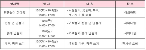 ¹Ú¹°°ü Ãø¿¡ µû¸£¸é Ãß¼® ¿¬ÈÞ µ¿¾È °íÇâÀ» ã´Â Áö¿ª¹Î°ú °ü¶÷°´µéÀÌ ÀüÅ빮ȸ¦ Á÷Á¢ üÇèÇØ º½À¸·Î½á ¿ì¸®ÀÇ ¹®È¸¦ ÀÌÇØÇϰí ÇÔ²² Áñ±æ ¼ö ÀÖ´Â ÇÁ·Î±×·¥À¸·Î ÁغñÇß´Ù.