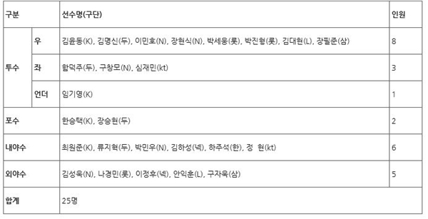 | ¡ã APBC ±¹°¡´ëÇ¥ÆÀ ÃÖÁ¾¿£Æ®¸® ¸í´Ü. <Á¦°ø=KBO> |