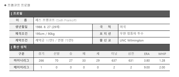 µÎ»êº£¾î½º´Â ¹Ì±¹ Ãâ½ÅÀÇ ¿ì¿Ï Åõ¼ö ¼¼½º ÇÁ·©ÄÚÇÁ(Seth Frankoff, 29¼¼)¿Í ÃÑ¾× 85¸¸ ´Þ·¯(°è¾à±Ý 10¸¸ / ¿¬ºÀ 75¸¸)¿¡ °è¾àÇß´Ù°í Áö³ 10ÀÏ °ø½Ä ¹ßÇ¥Çß´Ù.