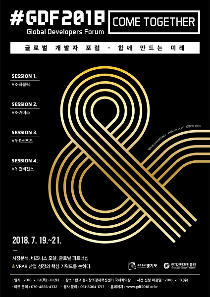 ¿ÃÇØ GDF 2018Àº ‘Come Together’¸¦ ÁÖÁ¦·Î VR¤ýAR »ê¾÷ È®ÀåÀ» À§ÇÑ ´Ù¾çÇÑ Çù·Â¹æ¾È¿¡ ´ëÇØ ³íÀÇÇϰí, À̸¦ À§ÇÑ »õ·Î¿î ½ÃÀå ¸ðµ¨À» Á¦½ÃÇÒ °èȹÀÌ´Ù.
