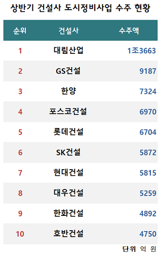 »ó¹Ý±â ¼öÁÖ 1À§ ‘´ë¸²»ê¾÷’, 2À§ ‘GS°Ç¼³’… µµ½ÃÁ¤ºñ½ÃÀå ¼±µµ ÀÔÁõ