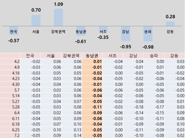 | ¡ã ¿ÃÇØ 4¿ù ÀÌÈÄ ¼¿ï ¾ÆÆÄÆ®°ª º¯µ¿·ü(À§) ¹× Áö¿ªº° ÁÖ°£ º¯µ¿·ü(¾Æ·¡). ´ÜÀ§ %. <Ãâó=Çѱ¹°¨Á¤¿ø> |