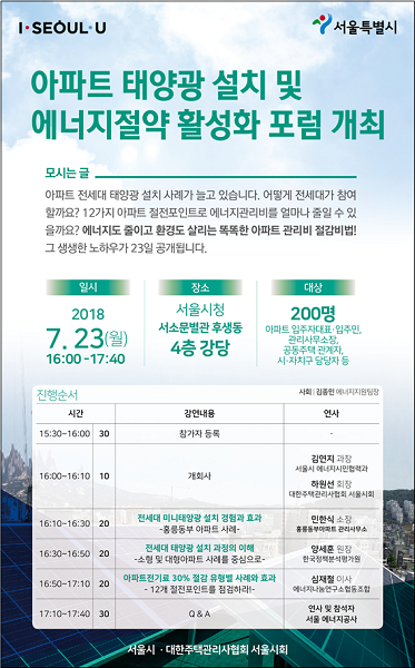 ‘¾ÆÆÄÆ® ž籤 ¼³Ä¡ ¹× ¿¡³ÊÁöÀý¾à Ȱ¼ºÈ Æ÷·³’¿¡´Â º£¶õ´ÙÇü ¹Ì´Ïž籤 ¼³Ä¡¿¡ °ü½É ÀÖ´Â ½Ã¹Î, ¾ÆÆÄÆ® ÀÔÁÖÀÚ ´ëÇ¥ ¹× °ü¸®»ç¹«¼ÒÀå µî Á÷¿ø, ¼¿ï½Ã ¹× ÀÚÄ¡±¸ ´ã´ç °ø¹«¿ø µî ´©±¸³ª Âü¿©ÇÒ ¼ö ÀÖÀ¸¸ç, ¼¿ï½Ã ȨÆäÀÌÁö¿Í ¿øÀüÇϳªÁÙÀ̱â ȨÆäÀÌÁö¿¡ ¸µÅ©µÈ ÁÖ¼Ò¸¦ ÅëÇØ ¿Â¶óÀÎÀ¸·Î ½Åû(¹«·á)ÀÌ °¡´ÉÇϸç, ÇöÀåÁ¢¼ö(¹«·á)µµ ÁøÇàÇÑ´Ù.