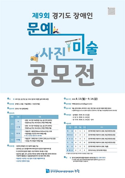 [¾ÆÀ¯°æÁ¦=Á¤Áø¿µ ±âÀÚ] °æ±âµµ Àå¾ÖÀκ¹Áö Á¾ÇÕÁö¿ø¼¾ÅÍ(ÀÌÇÏ ´©¸²¼¾ÅÍ)´Â Àå¾ÖÀÎ »çȸÂü¿© ÁõÁø ¹× ¿¹¼ú Ȱµ¿ Àå·Á¸¦ À§ÇÑ ‘Á¦9ȸ °æ±âµµ Àå¾ÖÀÎ ¹®¿¹¤ý¹Ì¼ú¤ý»çÁø °ø¸ðÀü’À» °³ÃÖÇÑ´Ù°í 31ÀÏ ¹àÇû´Ù.