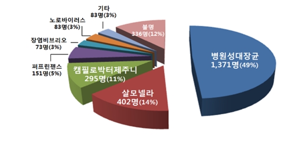 Âü°í·Î ÃÖ±Ù 5³â°£(2013~2017³â) ½ÄÁßµ¶ ¹ß»ý Åë°è¿¡ µû¸£¸é, º´¿ø¼º´ëÀå±Õ ½ÄÁßµ¶Àº ³¯¾¾°¡ ¹«´õ¿î ¿©¸§Ã¶(6~8¿ù)¿¡ °¡Àå ¸¹ÀÌ ¹ß»ýÇßÀ¸¸ç ÁÖ¿ä ¿øÀνÄǰÀº ä¼Ò·ù, À°·ù, ±è¹ä µî º¹ÇÕÁ¶¸®½ÄǰÀ̾ú´Ù.