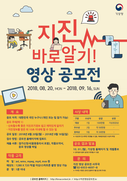 ±â»óûÀº ¿¹ÃøÇÒ ¼ö ¾ø´Â ÀçÇØÀÎ ‘ÁöÁø’¿¡ °üÇØ ±¹¹ÎµéÀÇ ¿Ã¹Ù¸¥ ÀÌÇØ¿Í ÁöÁøÁ¤º¸ Ȱ¿ë ¹æ¹ýÀ» µ½°íÀÚ Áö³ 20ÀϺÎÅÍ ÁöÁø ¹Ù·Î¾Ë±â ¿µ»ó°ø¸ðÀüÀ» ÁøÇàÇϰí ÀÖ´Ù.