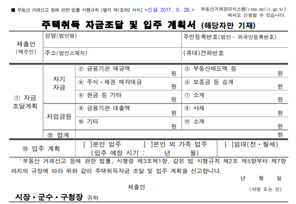 ÀÚ±ÝÁ¶´Þ°èȹ¼´Â °è¾à ü°áÀϷκÎÅÍ 60ÀÏ À̳»¿¡ ½Ã¤ý±º¤ý±¸ ÅäÁö°ú¿¡ Á÷Á¢ ½Å°íÇϰųª ±¹ÅäºÎ ºÎµ¿»ê°ü¸® ½Ã½ºÅÛ È¨ÆäÀÌÁö¿¡¼ Á¦ÃâÇØ¾ß ÇÑ´Ù. ¸Å¼öÀÎÀÌ ³¯ÀÎ ¶Ç´Â ¼¸íÇÑ °èȹ¼·Î ½Å°íÇÏ´Â °ÍÀÌ ¿øÄ¢À̸ç, ¸Å¼öÀÎ ¿Ü Á¦3ÀÚ°¡ ºÎµ¿»ê °Å·¡½Å°í¸¦ ÇÏ´Â °æ¿ì¿£ °Å·¡°è¾à ü°áÀϷκÎÅÍ 50ÀÏ À̳»¿¡ ½Å°íÀο¡°Ô ÁÖÅÃÃëµæ ÀÚ±ÝÁ¶´Þ°èȹ¼¸¦ Á¦°øÇØ¾ß ÇÑ´Ù.