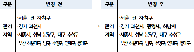 Áö³ 8¿ù 31ÀÏ HUG´Â ÃÖ±Ù ÁÖÅýÃÀåÀ» ¹Ý¿µÇØ °íºÐ¾ç°¡ »ç¾÷Àå È®»êÀ» Â÷´ÜÇϱâ À§ÇØ ±¤¸í½Ã¿Í Çϳ²½Ã¸¦ °íºÐ¾ç°¡ °ü¸®Áö¿ªÀ¸·Î Ãß°¡ ÁöÁ¤Çß´Ù.