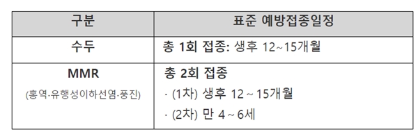 ¿¹¹æÁ¢Á¾À» Á¦¶§ ¿Ï·áÇÏ¸é °¨¿°º´ ¹ßº´À» »çÀü¿¡ ¸·À» ¼ö ÀÖ°í, ¸¸ÀÏ °¨¿°µÇ´õ¶óµµ °¡º±°Ô ¾Î°í Áö³ª°¡ ÇÕº´ÁõÀ» ¿¹¹æÇÒ ¼ö ÀÖÀ¸¹Ç·Î, »ýÈÄ 12~15°³¿ù »çÀÌ¿¡ ¼öµÎ¿Í MMR(È«¿ª¤ýÀ¯Ç༺ÀÌÇϼ±¿°¤ýdzÁø) ¹é½Å Á¢Á¾°ú ¸¸ 4~6¼¼¿¡ MMR ¹é½Å Á¢Á¾À» ½Ç½ÃÇϰí, Á¢Á¾ ¿©ºÎ¸¦ ¸ð¸£´Â °æ¿ì ¿¹¹æÁ¢Á¾±â·ÏÀ» È®ÀÎÇØ ÁÙ °ÍÀ» ±Ç°íÇß´Ù.