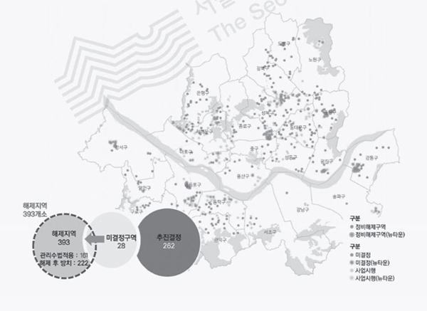 Áö³ 6ÀÏ ¼¿ï¿¬±¸¿øÀÌ ¹ßÇ¥ÇÑ ‘´ºÅ¸¿î¤ýÀç°³¹ß ÇØÁ¦ Áö¿ª ½ÇÅºм®°ú ÁÖ°ÅÀç»ý¹æÇâ’ ¿¬±¸º¸°í¼¿¡ µû¸£¸é ¿ÃÇØ 2¿ù ±âÁØ ¼¿ï 683°³ Á¤ºñ(¿¹Á¤)±¸¿ª °¡¿îµ¥ 393°³¼Ò°¡ ÇØÁ¦¸¦ °áÁ¤Çß°í, 262°³¼Ò°¡ »ç¾÷À» Á¤»ó ÃßÁø ÁßÀÌ´Ù. ƯÈ÷, ÇØÁ¦¸¦ °áÁ¤ÇÑ 393°³¼Ò Áß 222°³¼Ò(56.5%)´Â »õ·Î¿î ÁÖ°Å Àç»ý ´ë¾ÈÀ» ãÁö ¸øÇÑ °ÍÀ¸·Î ³ªÅ¸³µ´Ù.