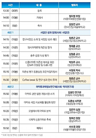 À̹ø ¹ßǥȸ¿Í ÇÔ²² ¸¶¾à·ù ±ÔÁ¦¤ý´Ü¼Ó °ü°èÁ¤ºÎ±â°ü°ú Çаè Àü¹®°¡µéÀ» ÇÑ ÀÚ¸®¿¡ ¸ð¾Æ ‘¸¶¾à·ù °úÇÐÁ¤º¸¿¬±¸È¸ ¿öÅ©¼ó’À» °³ÃÖÇØ ÀÌ ¿öÅ©¼ó¿¡¼´Â ºÒ¹ý ¸¶¾à·ù ±ÙÀýÀ» À§ÇÑ »óÈ£ Çù·Â ü°è ±¸Ãà ¹æ¾È¿¡ ´ëÇØ¼ ³íÀÇÇÒ ¿¹Á¤ÀÌ´Ù.