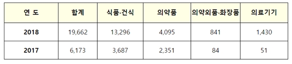 Á¦Ç°º°·Î´Â ½Äǰ¤ý°Ç°±â´É½Äǰ 68%(3687°Ç→1¸¸3296°Ç), ÀǾàǰ 21%(2351°Ç→4095°Ç), ÀÇ·á±â±â 7%(51°Ç→1430°Ç), ÀǾà¿Üǰ¤ýÈÀåǰ 4% (84°Ç→841°Ç) ¼øÀÌ´Ù.