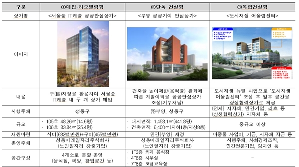 »ó»ýÇù·Â»ó°¡ Á¶¼º ¹× ¿î¿µ¹æ¾ÈÀÇ ÁÖ¿ä ³»¿ëÀº ¸ÕÀú, »ó»ýÇù·Â»ó°¡ÀÇ Á¶¼º¹æ½Ä°ú °ü·ÃÇØ¼, ÁöÀÚü ¶Ç´Â °ø°ø±â°üÀº ÇØ´ç µµ½ÃÀç»ý»ç¾÷Áö¿ª¿¡ »ó»ýÇù·Â»ó°¡Á¶¼º Çʿ伺À» ¸é¹ÐÈ÷ °ËÅäÇÑ ÈÄ, ´ë»óÁö Ư¼º ¹× »ç¾÷¹æ½Ä¿¡ µû¶ó ¸ÅÀÔÇü(°Ç¹° ¸®¸ðµ¨¸µ)°ú °Ç¼³Çü(½ÅÃà)Áß¿¡¼ Á¶¼º¹æ½ÄÀ» ¼±ÅÃÇÑ´Ù.