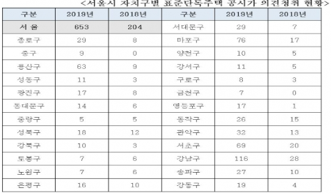¼¿ï½Ã 25°³ ÀÚÄ¡±¸º°·Î´Â °í°¡ ´Üµ¶ÁÖÅÃÀÌ ¸¹Àº °³²±¸ÀÇ ÀÌÀǽÅûÀÌ 116°ÇÀ¸·Î °¡Àå ¸¹Àº 17.8%¸¦ Â÷ÁöÇß°í, ÀÛ³â 28°Ç¿¡ ºñÇØ ¹«·Á 4¹è ÀÌ»ó ±ÞÁõÇß´Ù. ¸¶Æ÷±¸´Â 17°Ç¿¡¼ 76°ÇÀ¸·Î, ¼Ãʱ¸´Â 20°Ç¿¡¼ 69°ÇÀ¸·Î, ¿ë»ê±¸´Â 9°Ç¿¡¼ 63°ÇÀ¸·Î °¢°¢ Áõ°¡Çß´Ù.