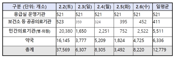 31ÀÏ º¸°Çº¹ÁöºÎ(Àå°ü ¹Ú´ÉÈÄ)´Â ¼³ ¿¬ÈÞ(¿À´Â 2¿ù 2ÀÏ∼6ÀÏ)¿¡ ¹®À» ¿©´Â º´¤ýÀÇ¿ø°ú ¾à±¹ÀÇ Á¤º¸¸¦ Á¦°øÇÑ´Ù°í ¹àÇû´Ù.